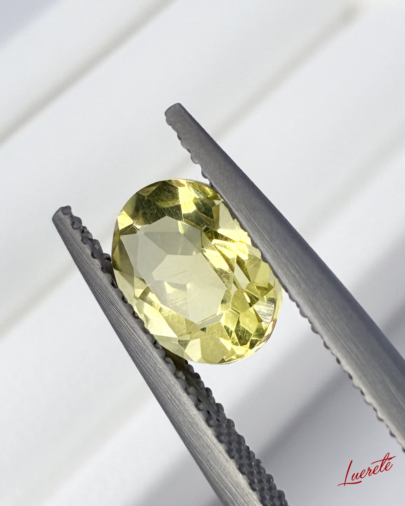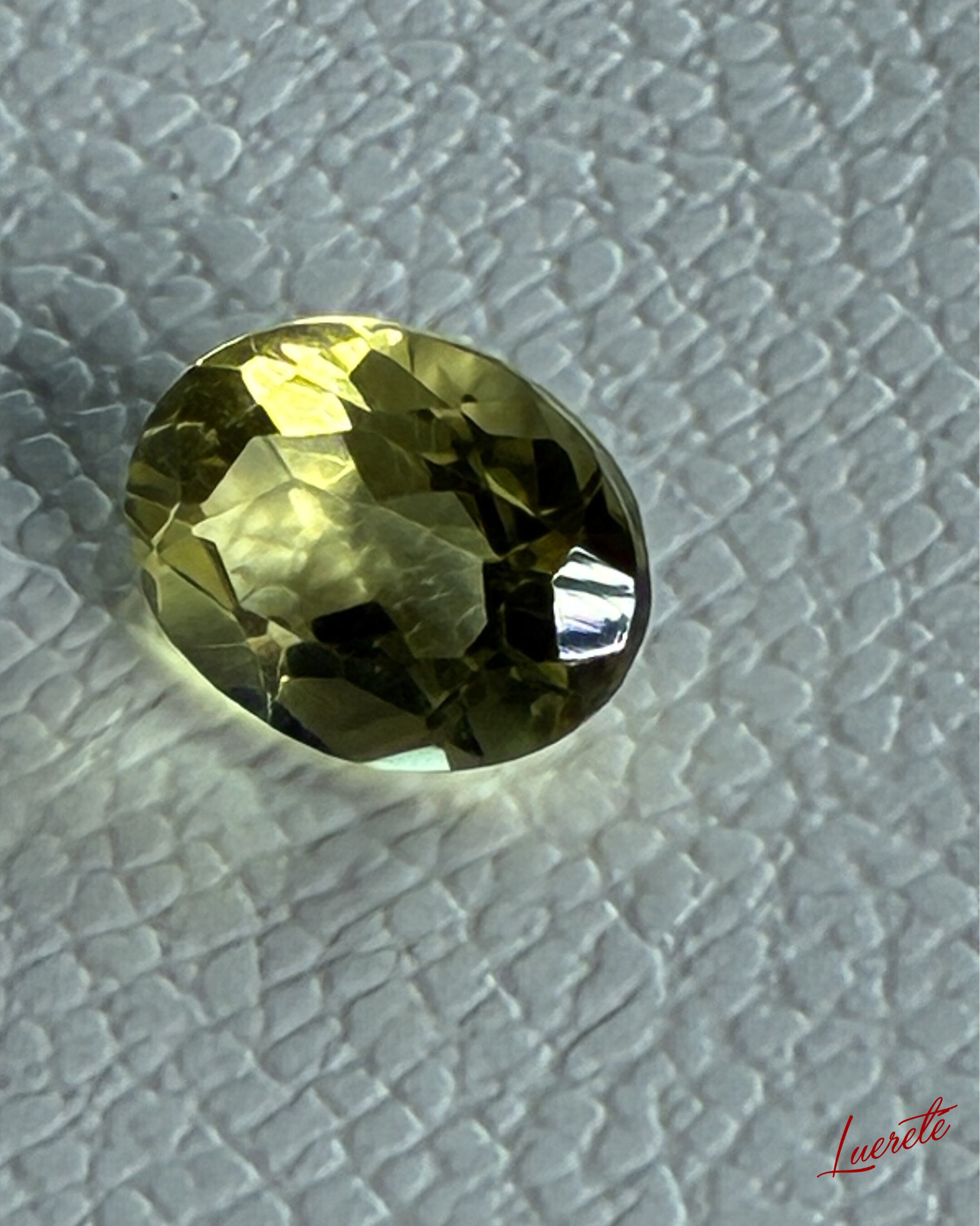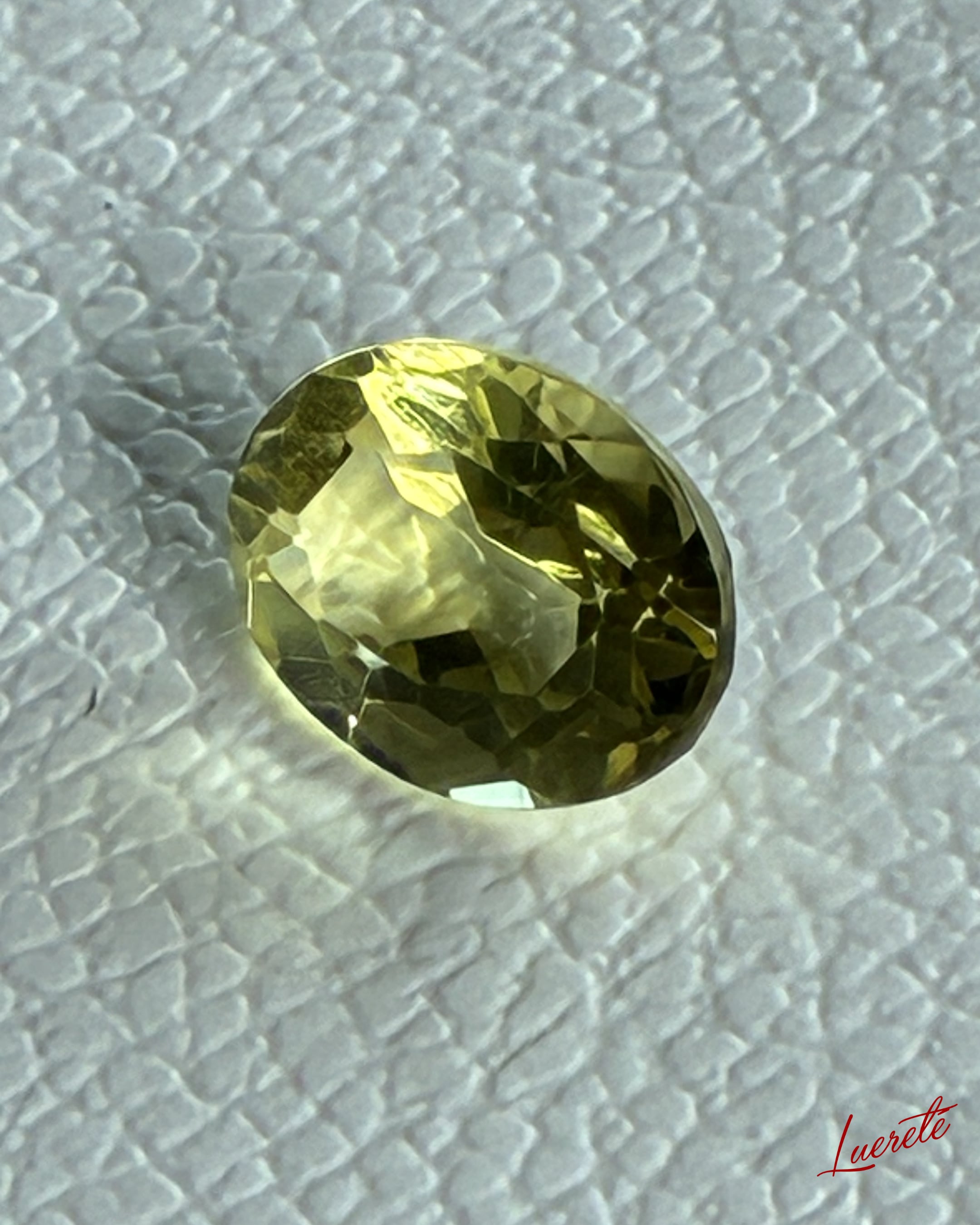 透明感のあるライムイエローが美しく輝く天然レモンクォーツのルース。