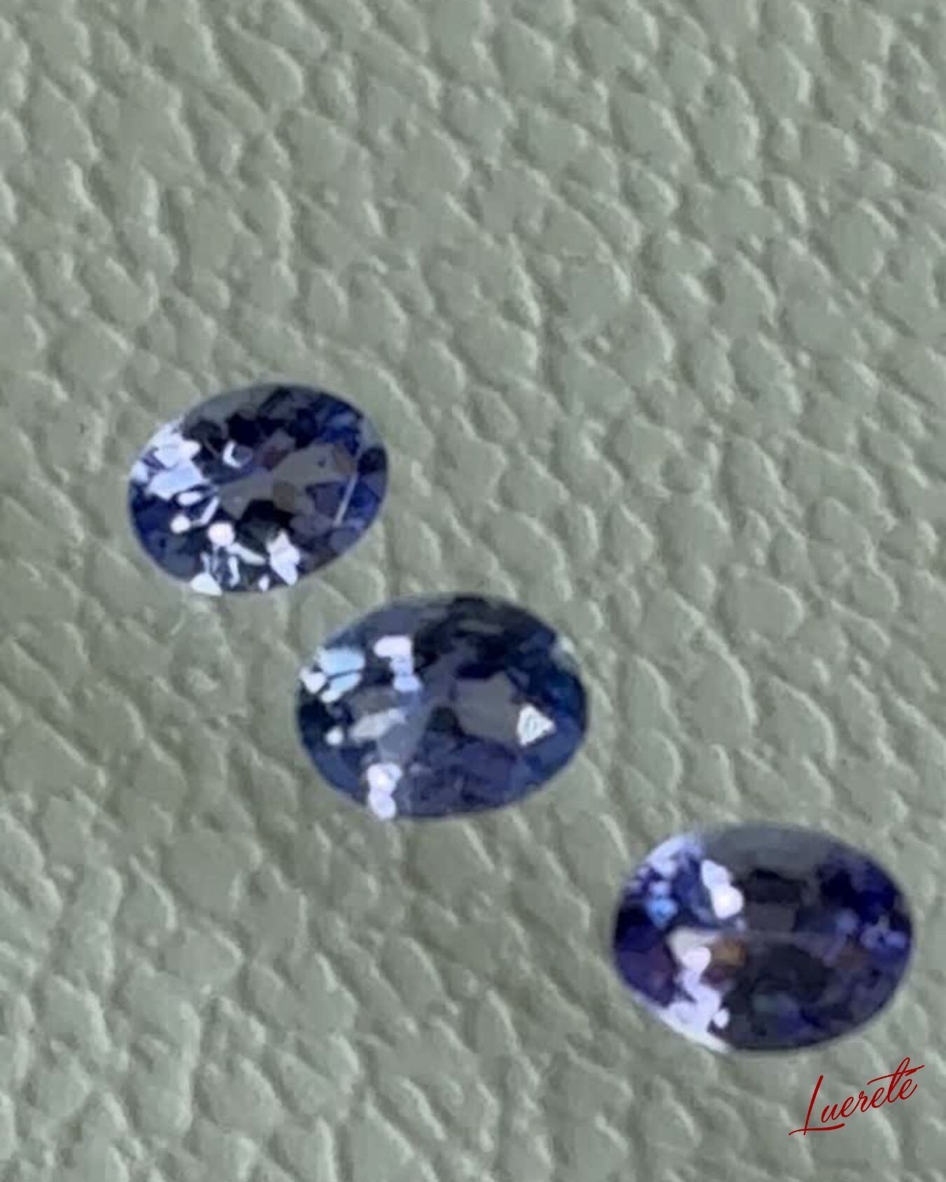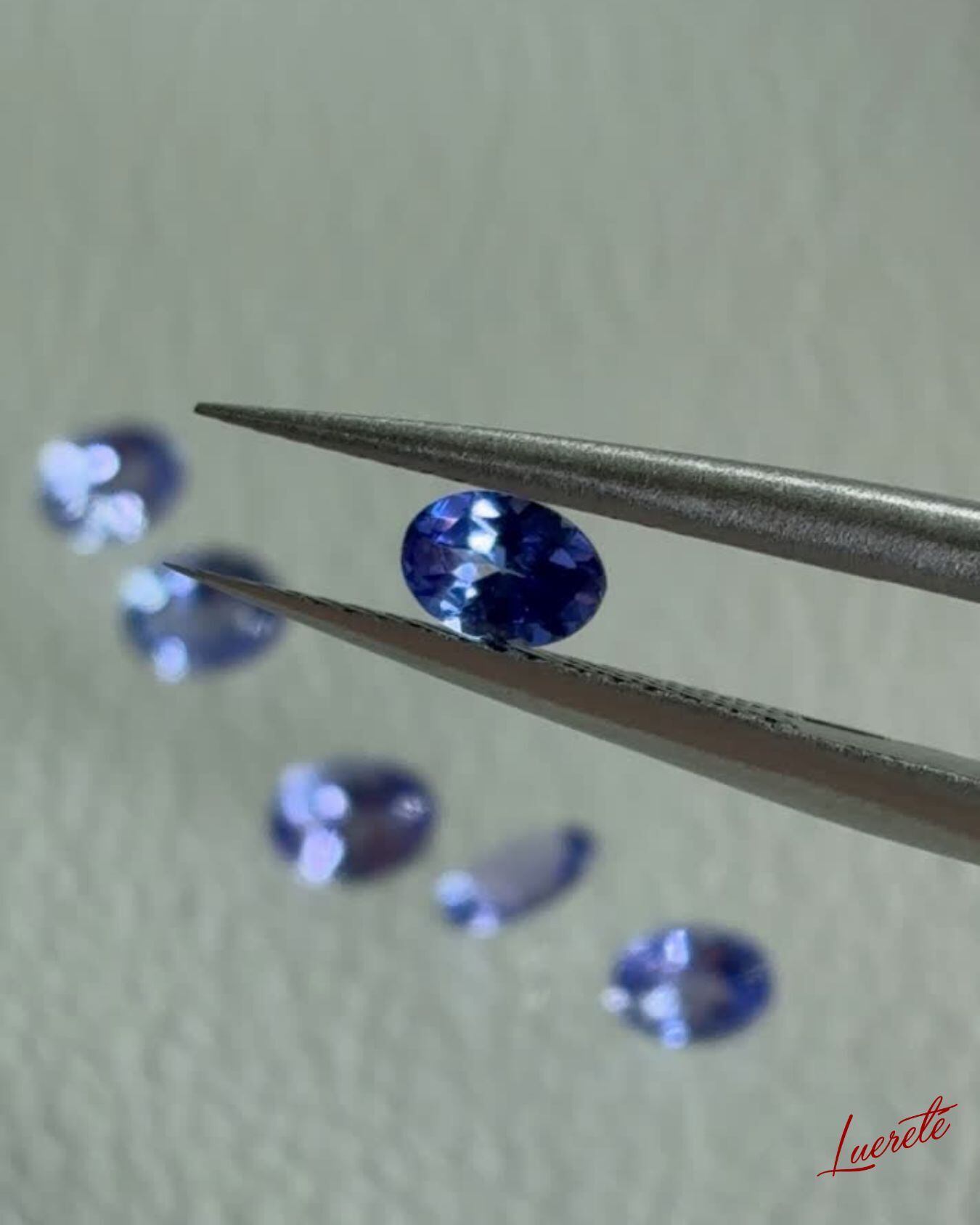 青みを帯びた深いバイオレットカラーが美しく輝く、天然タンザナイトの6石セット。