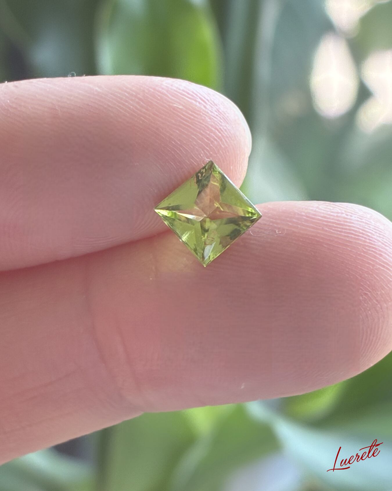 透明感のある鮮やかなライムグリーンが美しく輝く、天然ペリドットのルース。