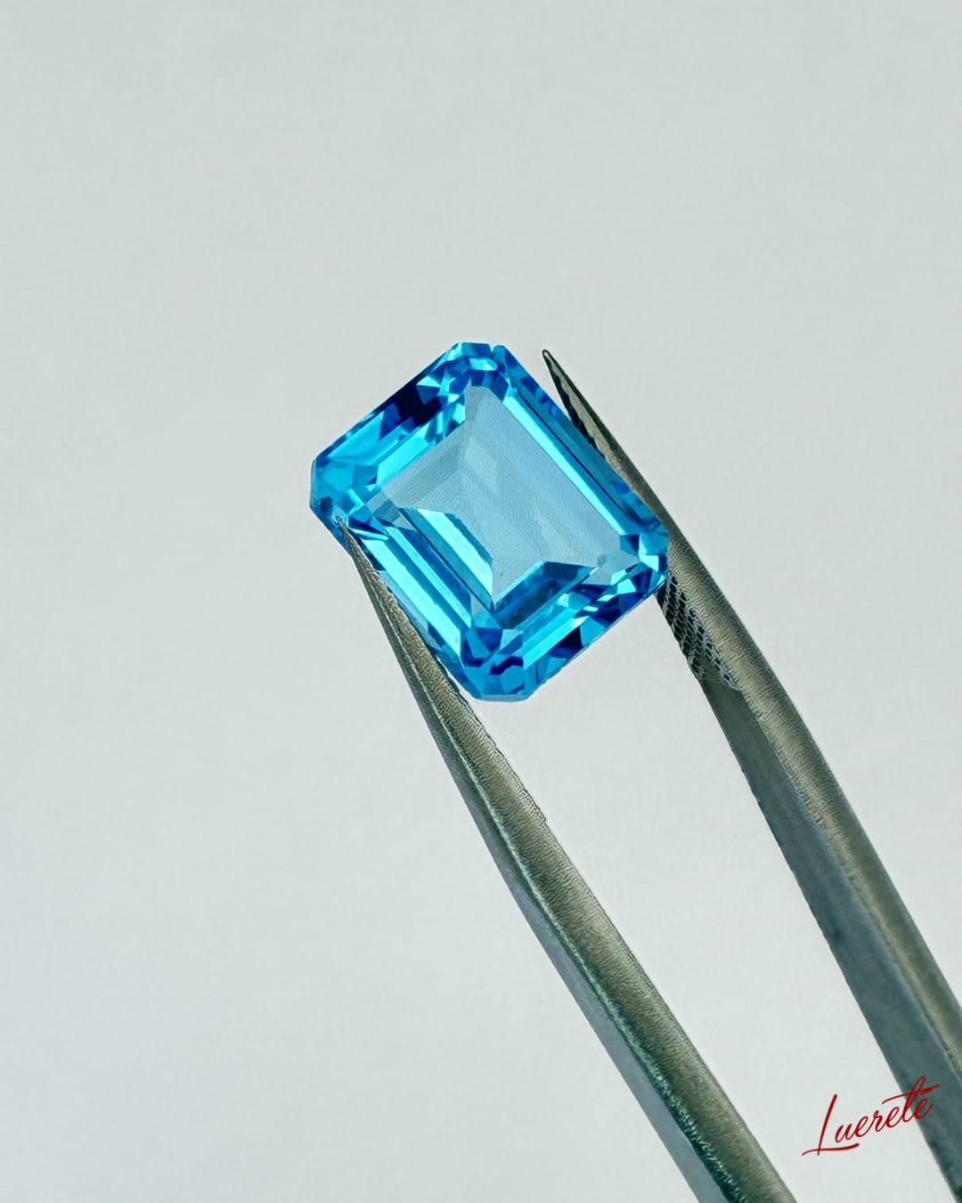 透明感あふれる澄んだブルーが美しく輝く、天然ブルートパーズのルース。