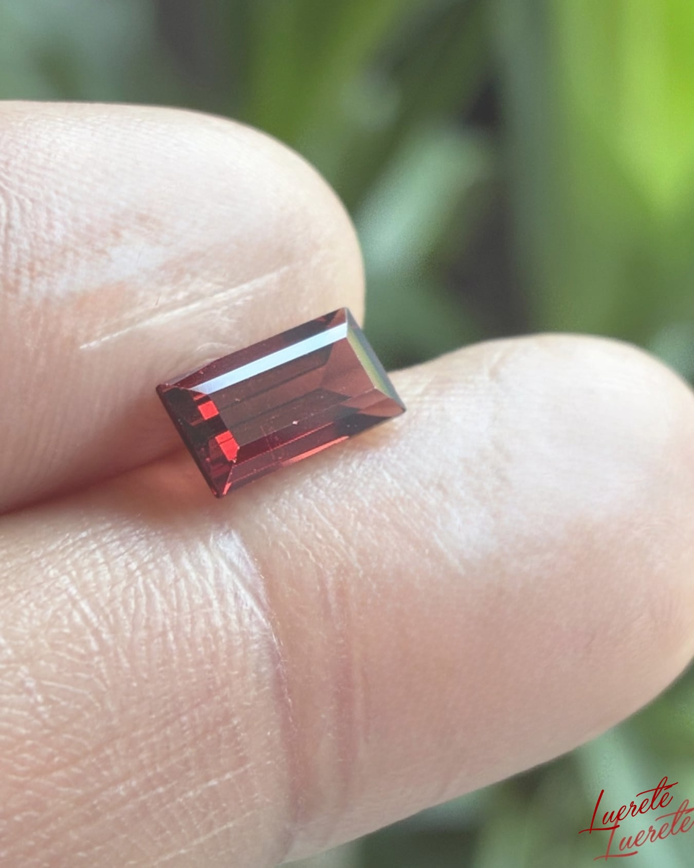 深みのあるダークレッドが美しく輝く、天然ガーネットのルース。