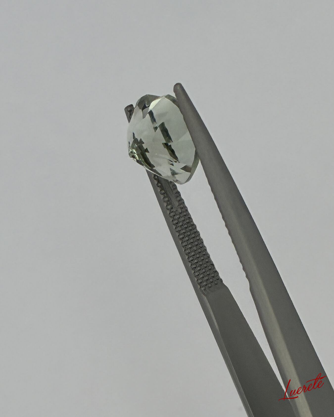 やわらかなペールグリーンが美しく輝く、天然グリーンクォーツのルース。